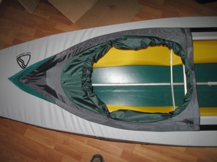 Помимо этого, носовые и кормовые посадочные места в фартуке позволяют производить посадку и высадку из байдарки без снимания фартука. Швы фартука проклеены.