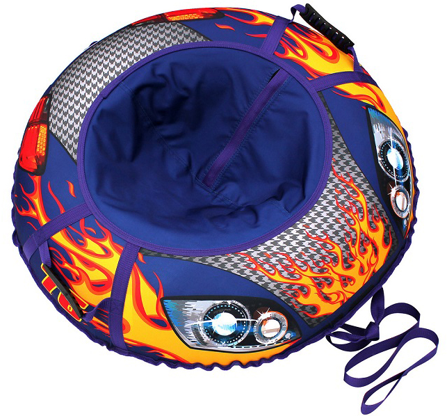 Яркий дизайнерский тюбинг российского производства "Болид" - это отличная ватрушка для катания по снегу.  Катание на санках приносит радость не только детям, но и взрослым! Поэтому выбирая санки-ватрушку диаметром 110 см Вы можете кататься на них вместе с ребенком.